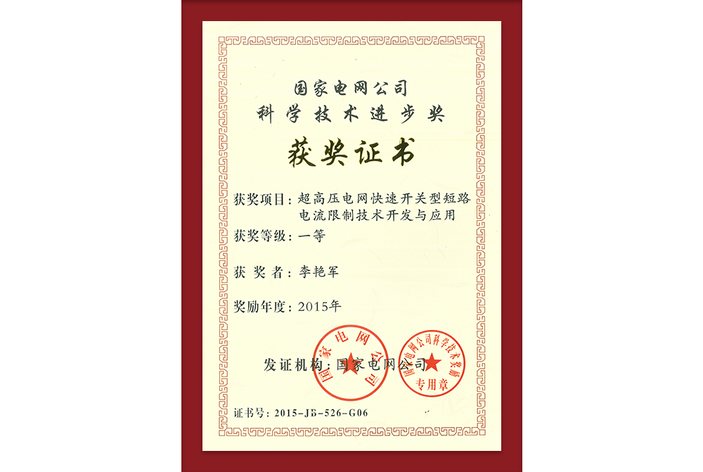 国家电网科技进步三等奖