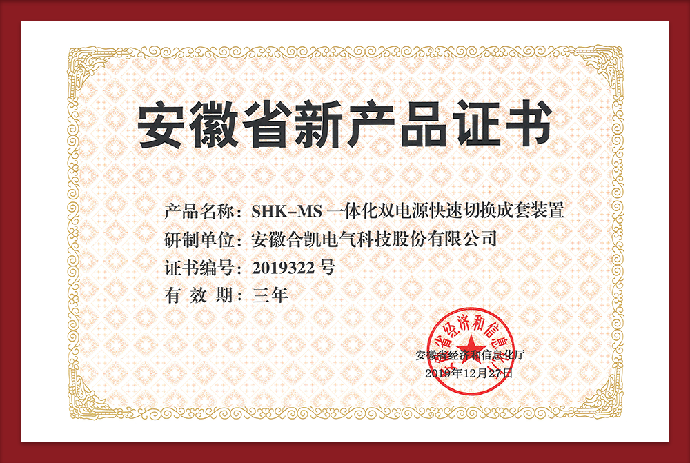 科技成果-SHK-MS一体化双电源快速切换成套装置