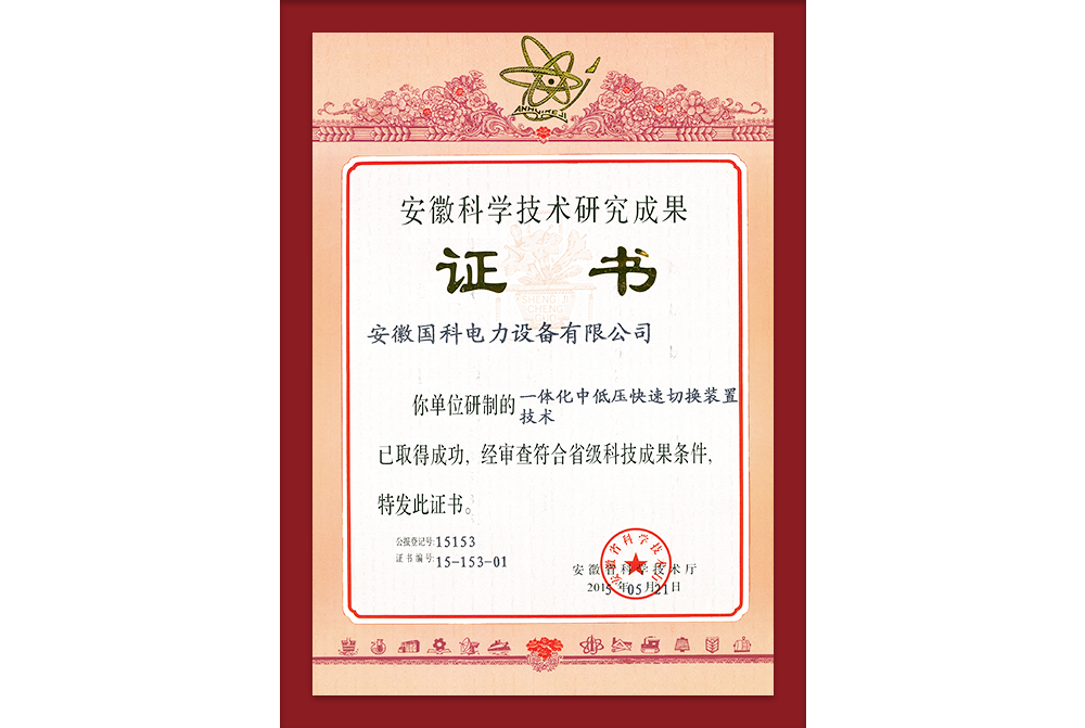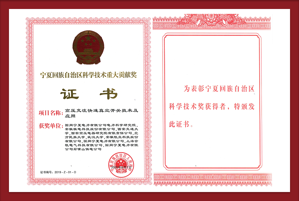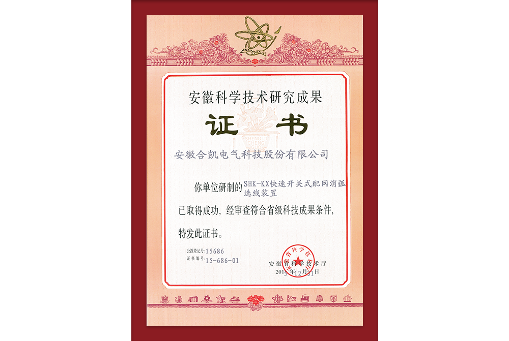 开关消弧科技成果证书